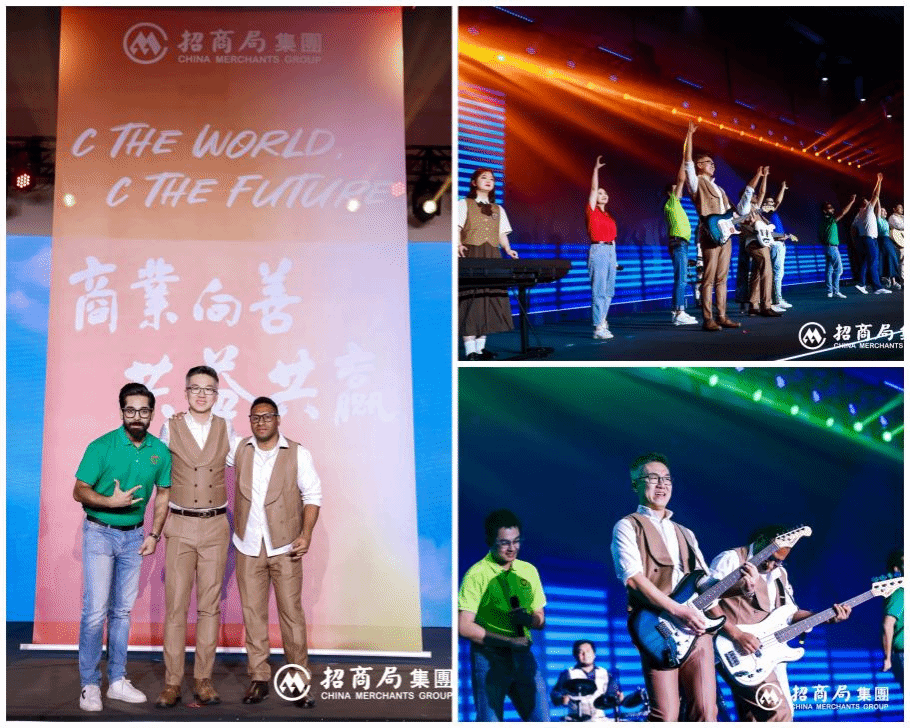 由我校留学生教育中心安刚老师、巴基斯坦籍硕士生HASSAN MUHAMMAD USMAN(伍兹)、巴布亚新几内亚籍硕士生AMET SAUL PAUL(萨欧)等组成的大连海事大学Seablue乐队,与其他C Blue学员和志愿者等共同演唱了由安刚老师创作的C Blue优才计划宣传歌曲《C the World, C the Future》,共同表达了中外青年在招商局优才计划资助下,互学互鉴、共同成长,携手共创未来的美好憧憬,展现了招商局C系列公益品牌的积极成果和深远意义,在现场的嘉宾观众中产生了积极共鸣和热烈反响。