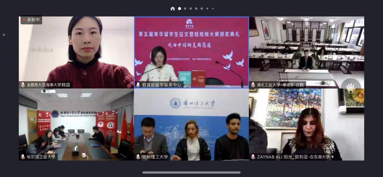 12月21日下午,“第五届《我与中国的美丽邂逅》来华留学生征文暨短视频大赛颁奖典礼以线上形式成功举办。教育部国际合作与交流司一级调研员陈盈晖、教育部留学服务中心副主任杨凌出席活动。我校获奖留学生金霞恩受邀与60多个国家的200多名留学生一起参加典礼。