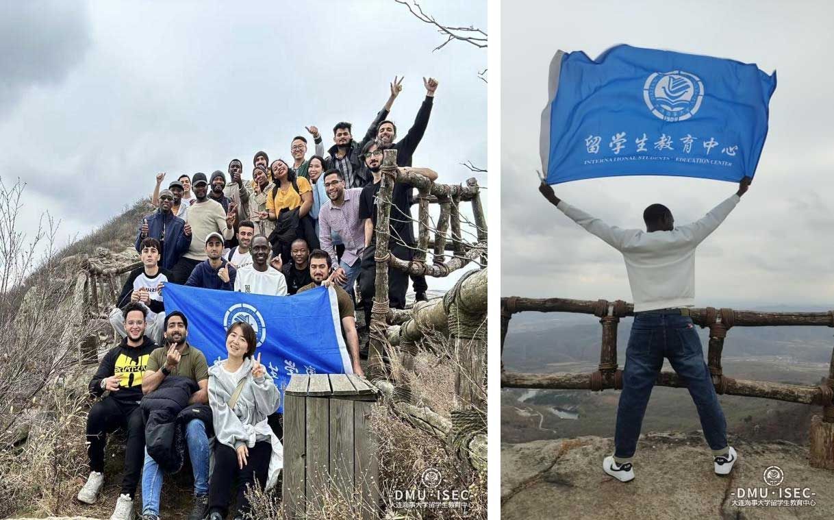 随后,同学们来到了金州区历史文化名山“小黑山”,其主峰海拔469.1米,山势巍峨崇峻、沟壑交错。一路上,大家结成小队,相互帮助和鼓励,经过试剑石、大龟石、云雾洞等奇石幽谷,最终来到山顶“点将台”。放眼远眺,仿佛整座金州城尽收眼底,在自然和历史的交相呼应中,大家感慨万千、不禁想起汉语课上学到的“会当凌绝顶,一览众山小”的千古佳句。