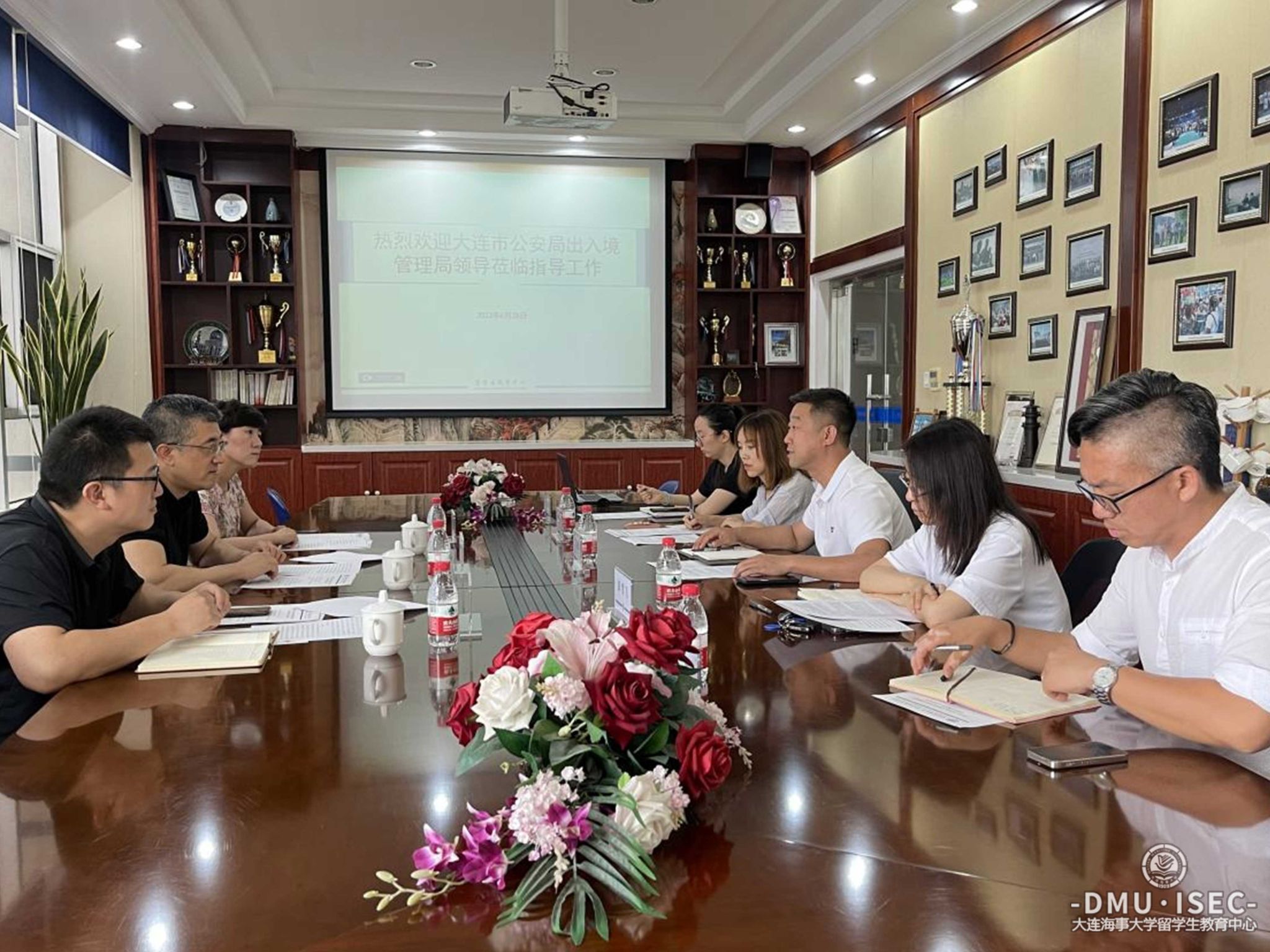 为了解我校来华留学生整体情况,日常管理存在问题和困难,就如何做好来华留学管理服务征求意见建议,推动高层次国际人才培养,6月28日下午,大连市公安局出入境管理局官大惟、大连市公安局出入境管理局外国人签证受理科科长李秋霞、大连市公安局出入境管理局高新园区综合科科长高可可一行三人莅临大连海事大学留学生教育中心调研座谈,留学生教育中心主任刘绍满、副主任彭雪飞及相关工作人员参加座谈。