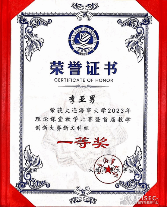 留学生教育中心李亚男老师在大连海事大学2024年庆祝教师节暨表彰大会接受表彰