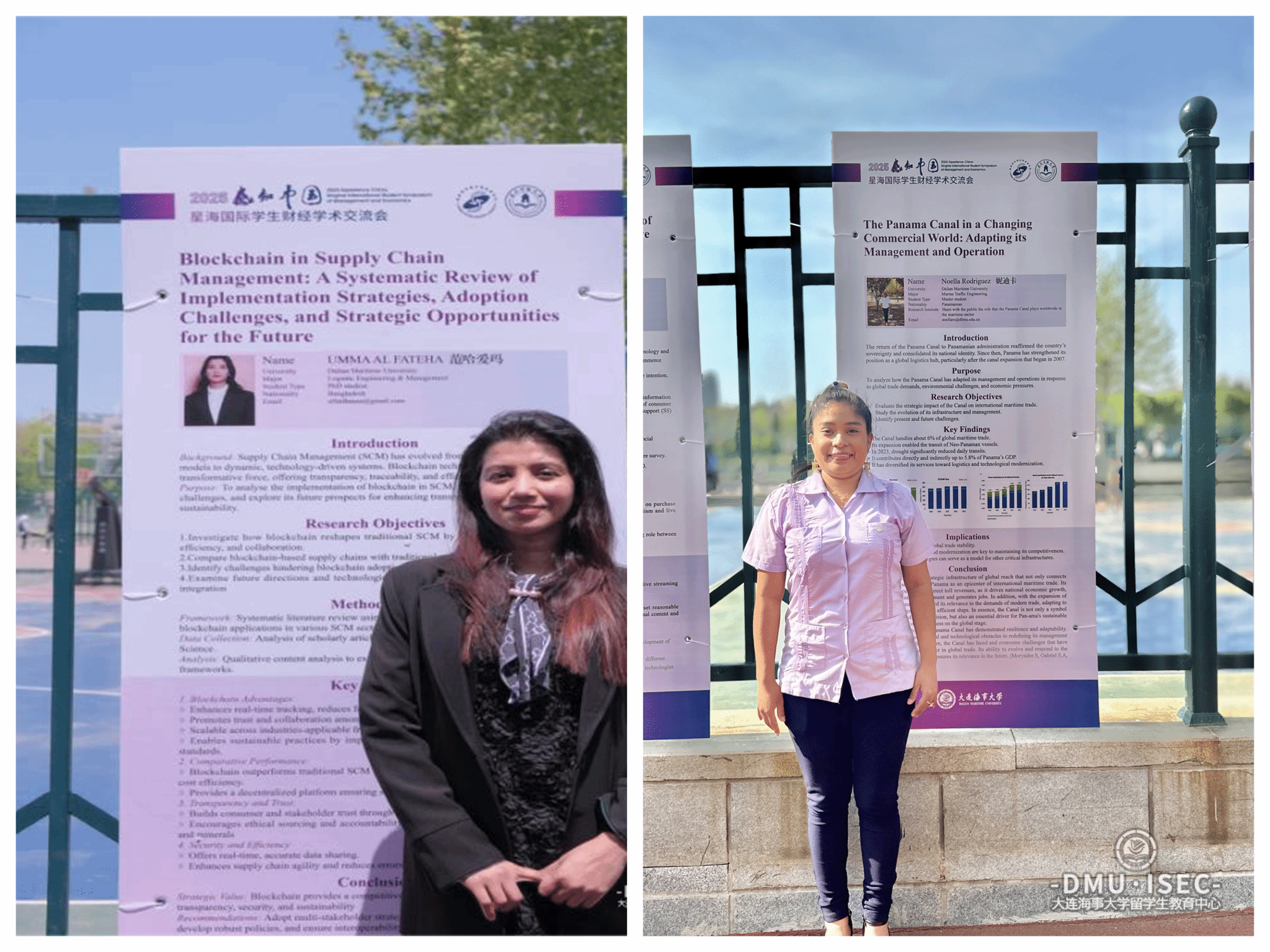 During the poster display session, DMU Bangladeshi PhD student in Logistics Engineering and Management, FATEHA UMMA AL, and Panamanian Master's student in Maritime Traffic Engineering, RODRIGUEZ RIVAS NOELLA NEDELKA, presented their latest research papers in graphic and textual form, fully demonstrating the academic vitality and innovative thinking of international students.